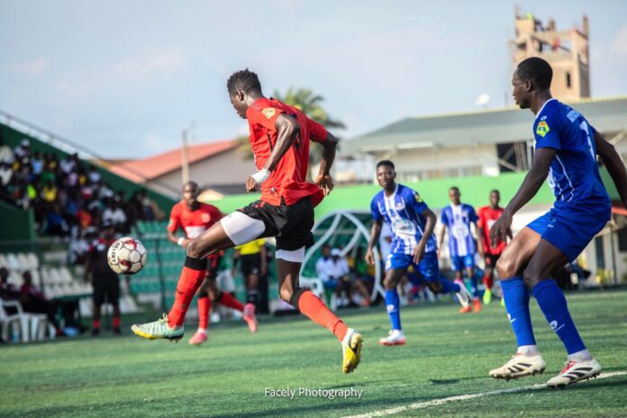 Les Sangarédikas ont bien tenté de réagir, mais la défense du Horoya est restée solide.