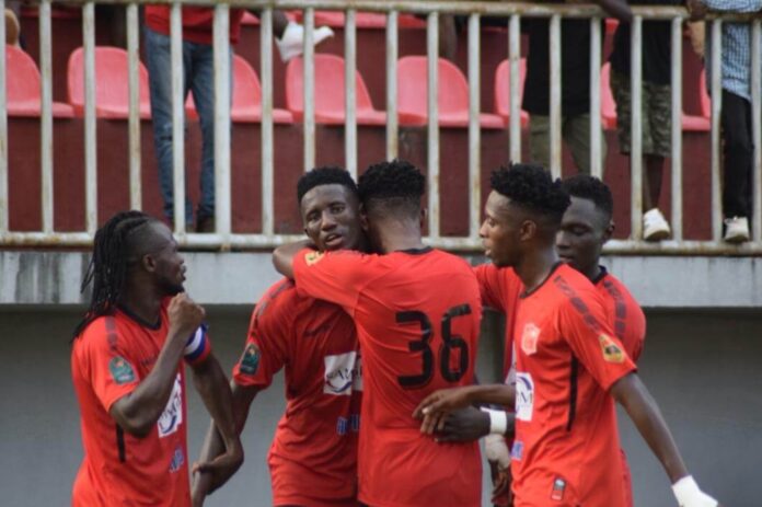 Portés par les applaudissements et les cris d’un public totalement acquis à leur cause, les poulains de l’entraîneur malien Nouhoum Diané entament la rencontre avec intensité. Dès le coup d’envoi, les Matamkas prennent la maîtrise du jeu. Dès la 7ᵉ minute, sur une passe d’Ismaël Camara, Morlaye Sylla lance Mohamed Djibo Wonkoïe qui, d’une frappe puissante, trompe le gardien du Loubha FC : 1-0 pour le Horoya.