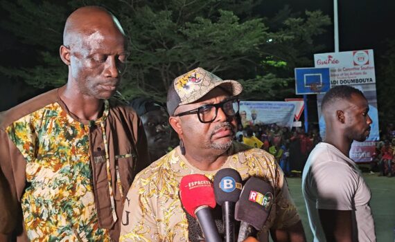 Pour sa part le grand sponsor du tournoi féminin de football doté du trophée Lauriane Doumbouya, première dame de la République, Dr. David Makongo en s’adressant à la jeunesse de Coronthie dans la commune de kaloum soulignera ceci : » jeunesse de kaloum nous sommes fier de vous. Continuez à soutenir le président, le général Mamadi Doumbouya dans la paix, l’amour, l’entente, la quiétude sociale, dans la sécurité et l’unité nationale. Le président Mamadi Doumbouya est un jeune comme vous, le soutenir, c’est soutenir la jeunesse guinéenne. C’est pourquoi, je serai toujours auprès de vous avec ma fondation MAFAC pour vous donner la force nécessaire qu’il faut pour le bonheur du peuple guinéen. Ce tournoi de football nocturne organisé pour les jeunes filles qui porte le nom de notre maman, est une bonne chose. Ensemble prônons la paix en Guinée, car sans la paix rien ne peut aller de l’avant. Si vous voyez que ce tournoi de football se joue, c’est parce qu’il y a la paix. Nous avons intérêt à accompagner notre champion le général Doumbouya dans la paix. La paix n’a pas de prix. Le président Mamadi Doumbouya est avec tout le peuple de Guinée. Il est en train de travailler jour et nuit pour le développement de la Guinée et également pour le rayonnement de la jeunesse guinéenne. Encore et encore jeunesse de Guinée prônée la paix et cette paix passe aussi par ce quartier Coronthie dans la commune kaloum « , précise le PDG de la fondation MAFAC.